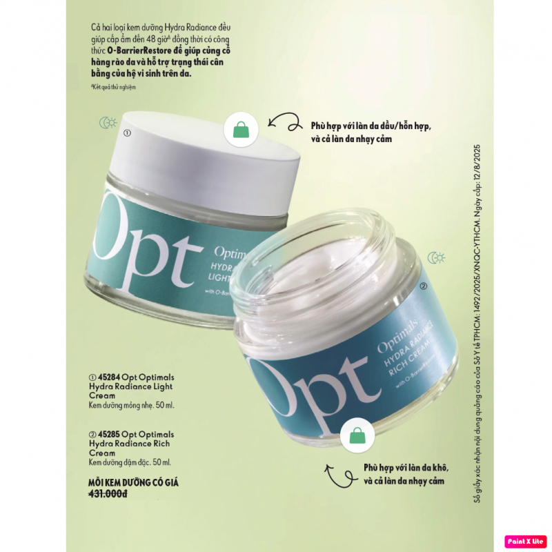 45284 Kem dưỡng mỏng nhẹ Opt Optimals Hydra Radiance Light Cream