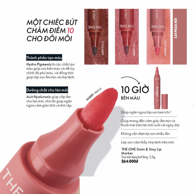 MỘT CHIẾC BÚT CHẤM ĐIỂM 10 CHO ĐÔI MÔI.Thành phần tạo màu Hydro Pigments là các chất tạo màu giúp son bền màu và dễ tùy chỉnh độ phủ màu, và đồng thời giúp lớp son ẩm mịn và nhẹ tênh. Dưỡng chất cho làn môi Axit Hyaluronic giúp cấp ẩm cho làn môi, nhờ đó giúp ngăn ngừa cảm giác khô và thô ráp.