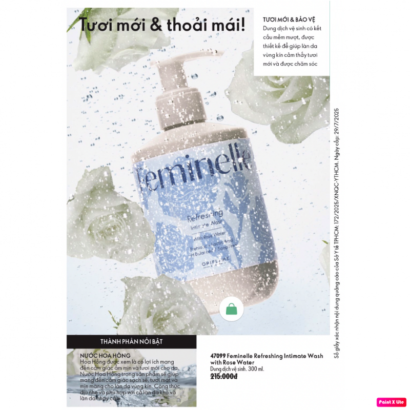 Công dụng: Giúp làm sạch làn da vùng kín, bổ sung nước Hoa Hồng, Prebiotic và Axit Lactic. Giúp ngăn mùi và mang đến cảm giác tươi mới.